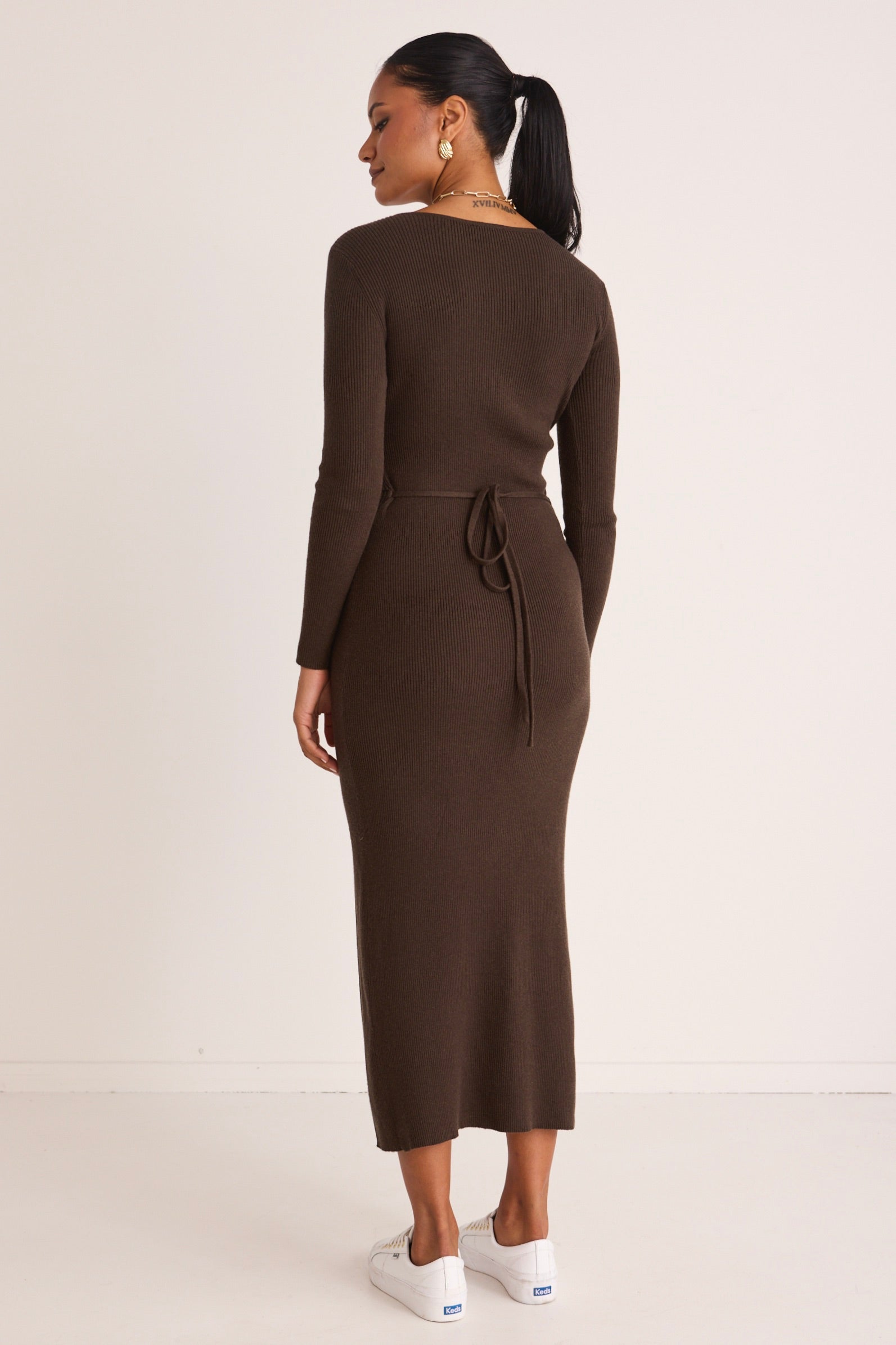 Another Dark Khaki Wrap Rib Knit Maxi Dress